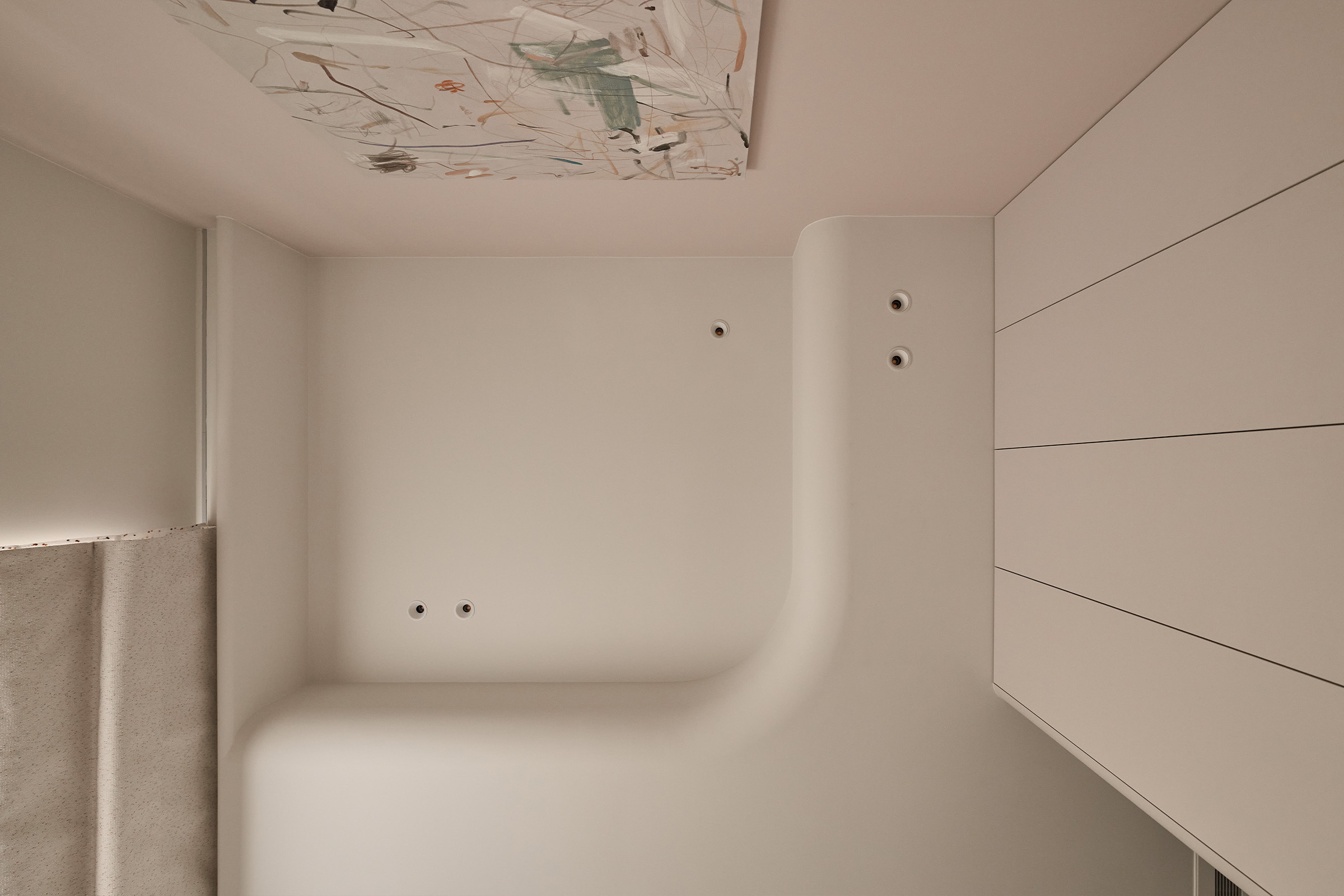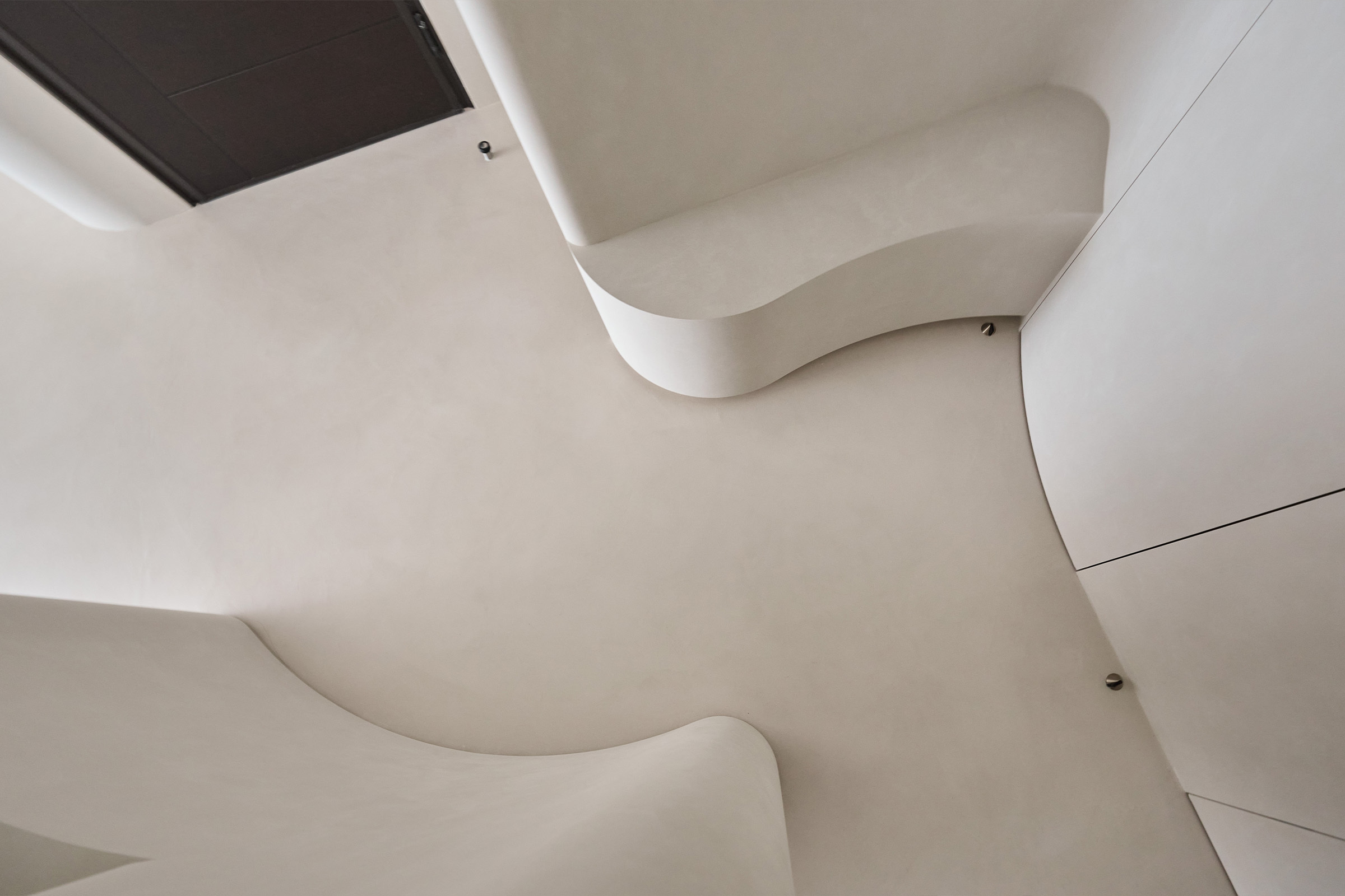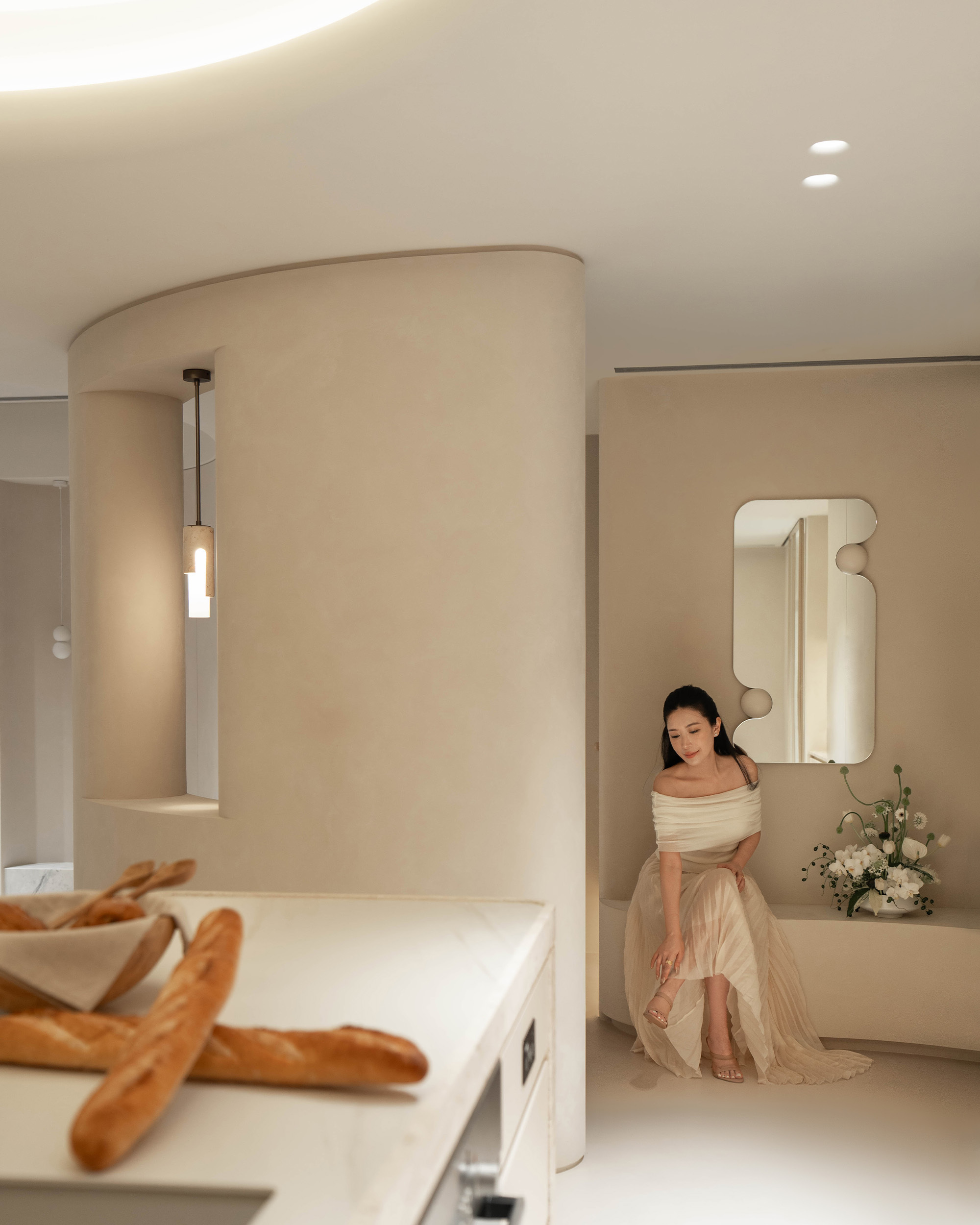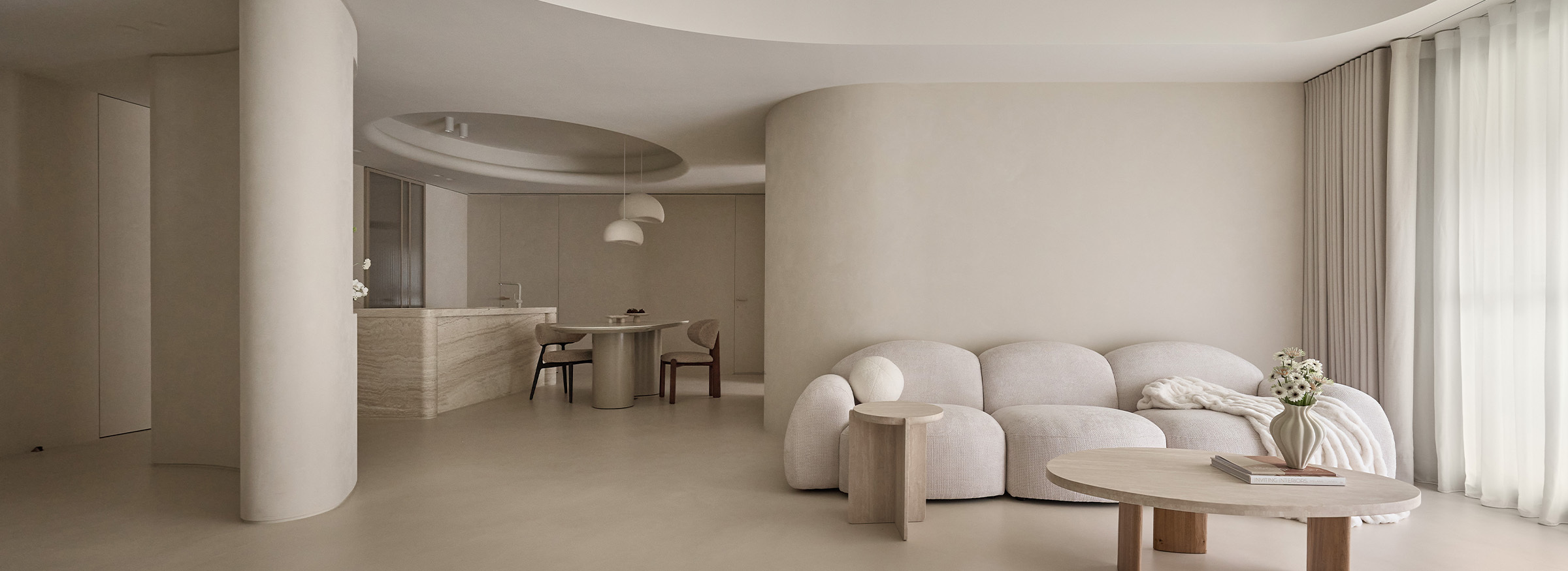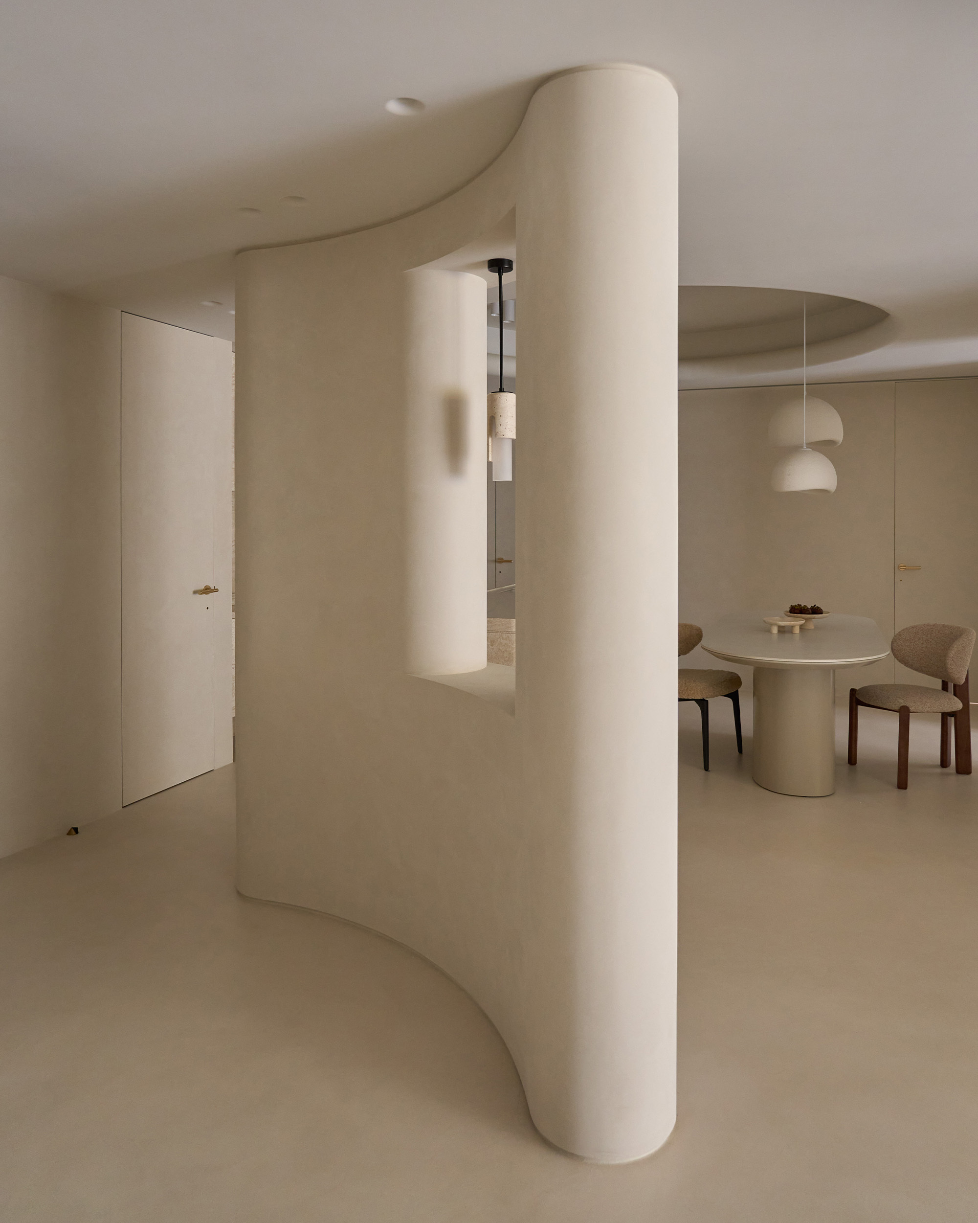 弧形天花的延伸,它柔化了界線,也牽引出空間的律動。