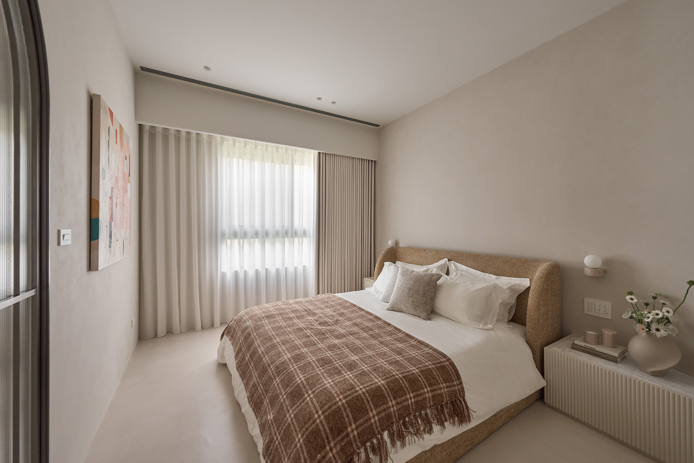 在這個燕麥色的家裡,沒有過度雕飾的語言,每一道牆、每個弧線、每一束光,都乘載著屋主對生活的溫柔堅持。