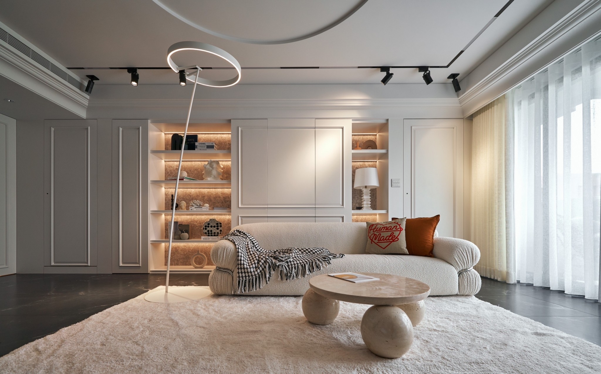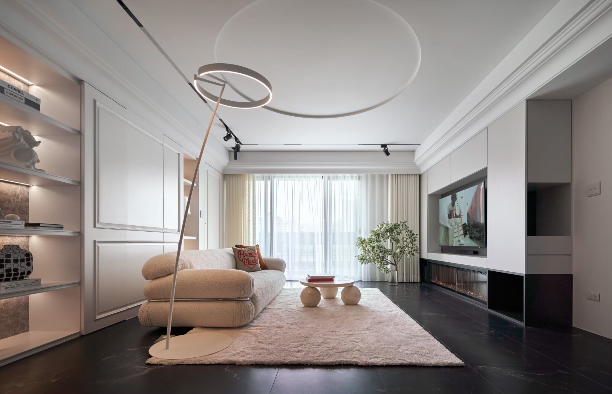 我們利用家具擺設創造視覺焦點,大量使用圓弧造型家具,打造個性又經典的軟裝廓型。