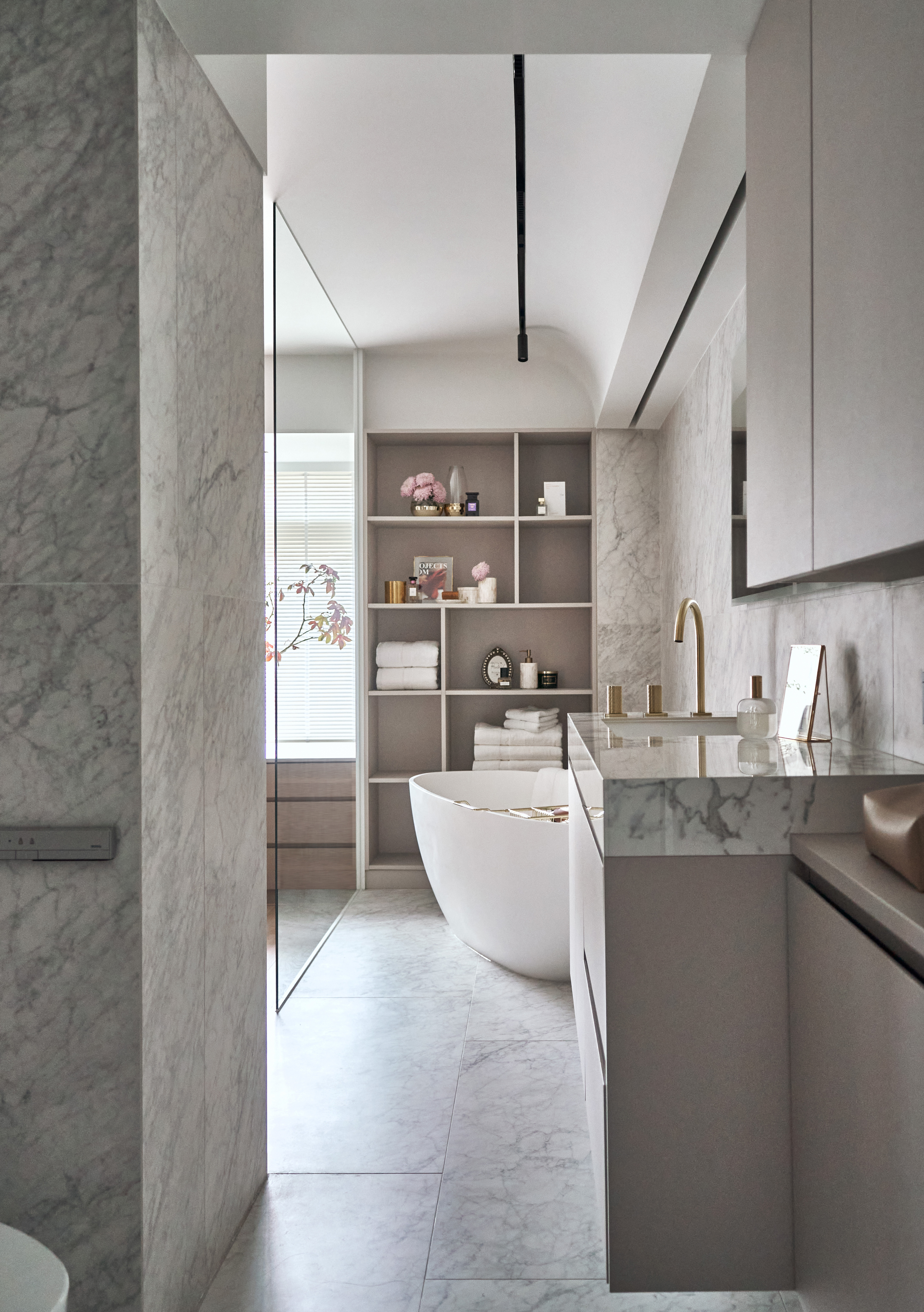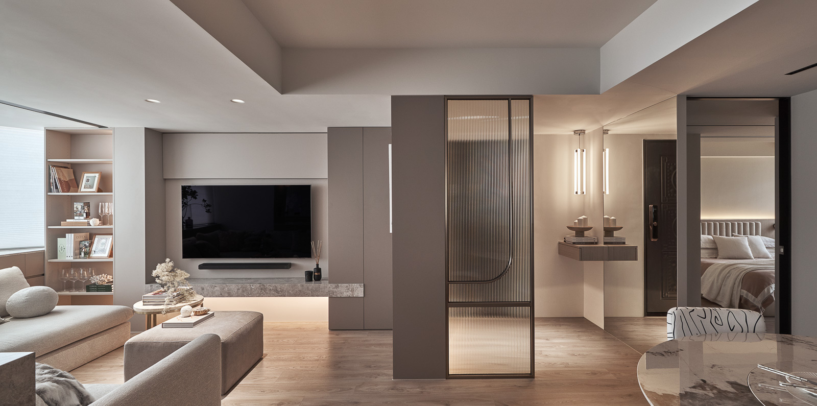 褪去老屋歲月痕跡,在大理石及溫潤的奶茶色調勻下,為居家空間注入輕奢暖意。