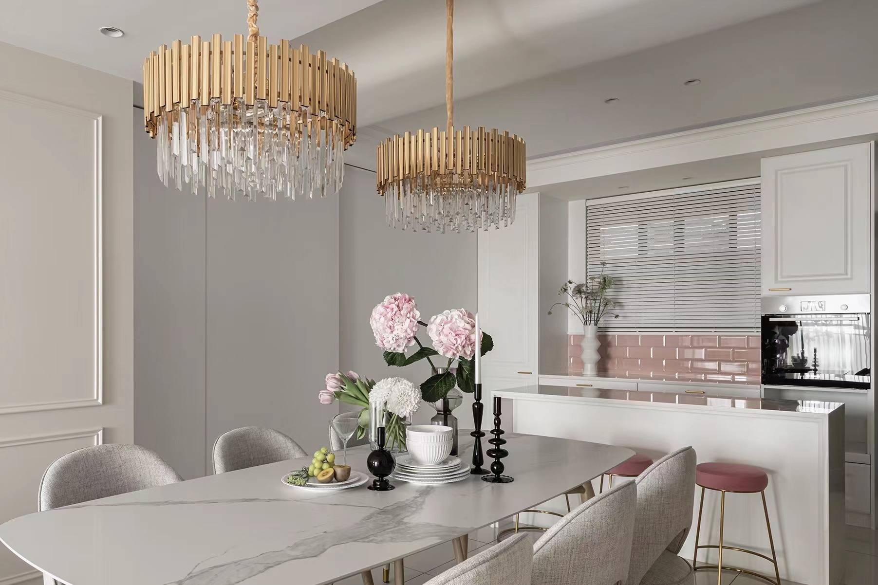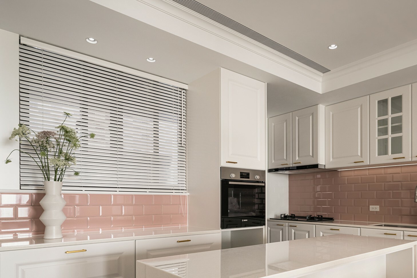 廚房餐廳空間以精緻金屬及粉色微點綴,
