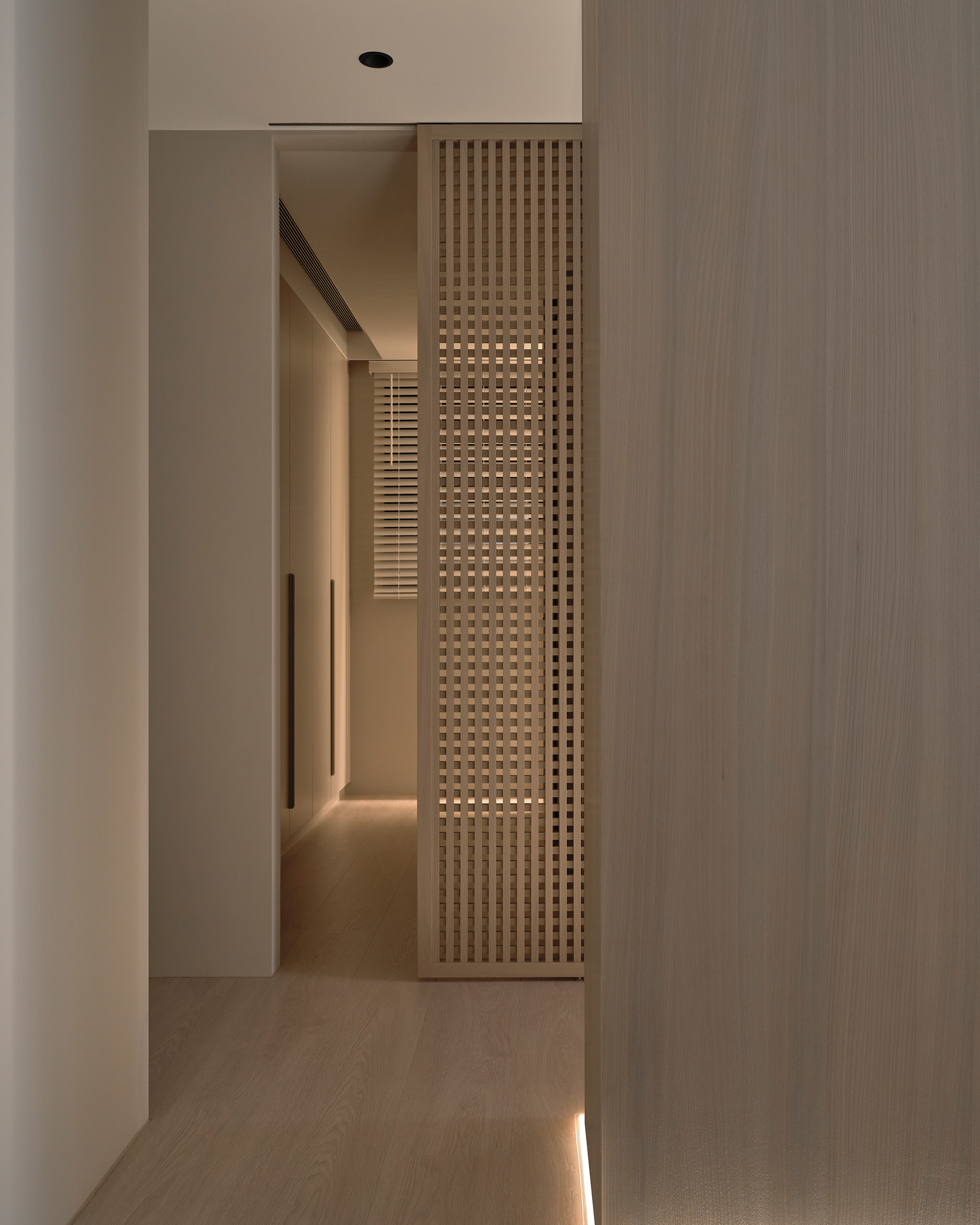 連接更衣室的格柵門延續通透語彙,使空間層層遞進,視覺自然延伸。