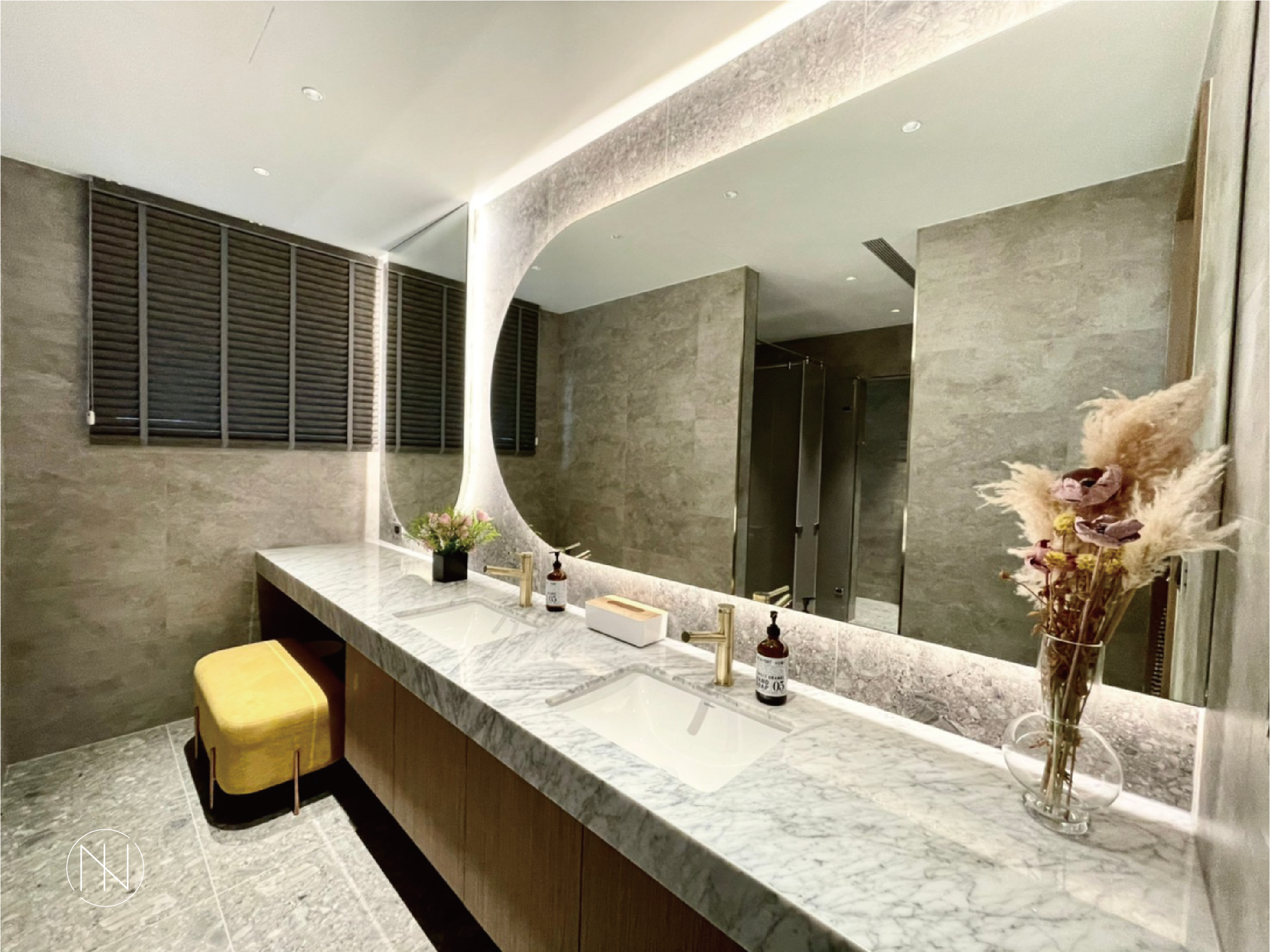 柔和了大理石與金屬較堅硬冰冷的感受。