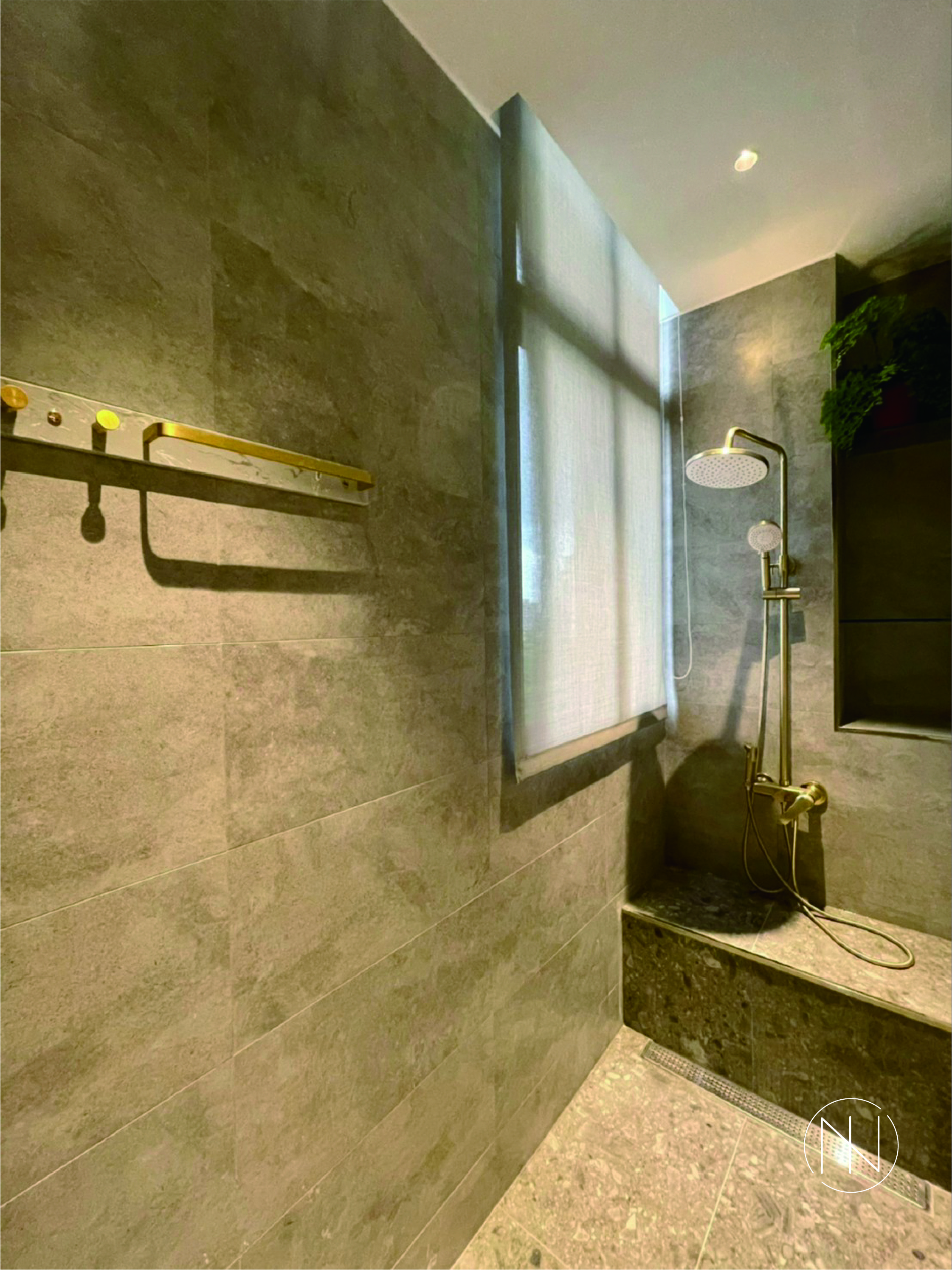 廁所與淋浴間選擇防滑處理過,義大利進口的水磨石地磚,