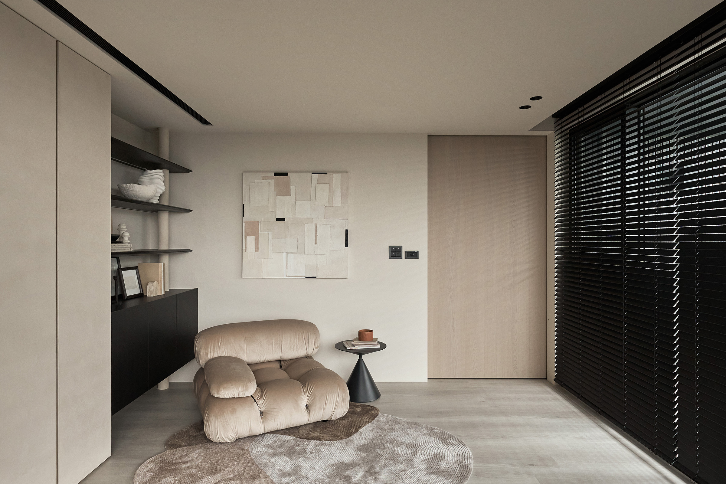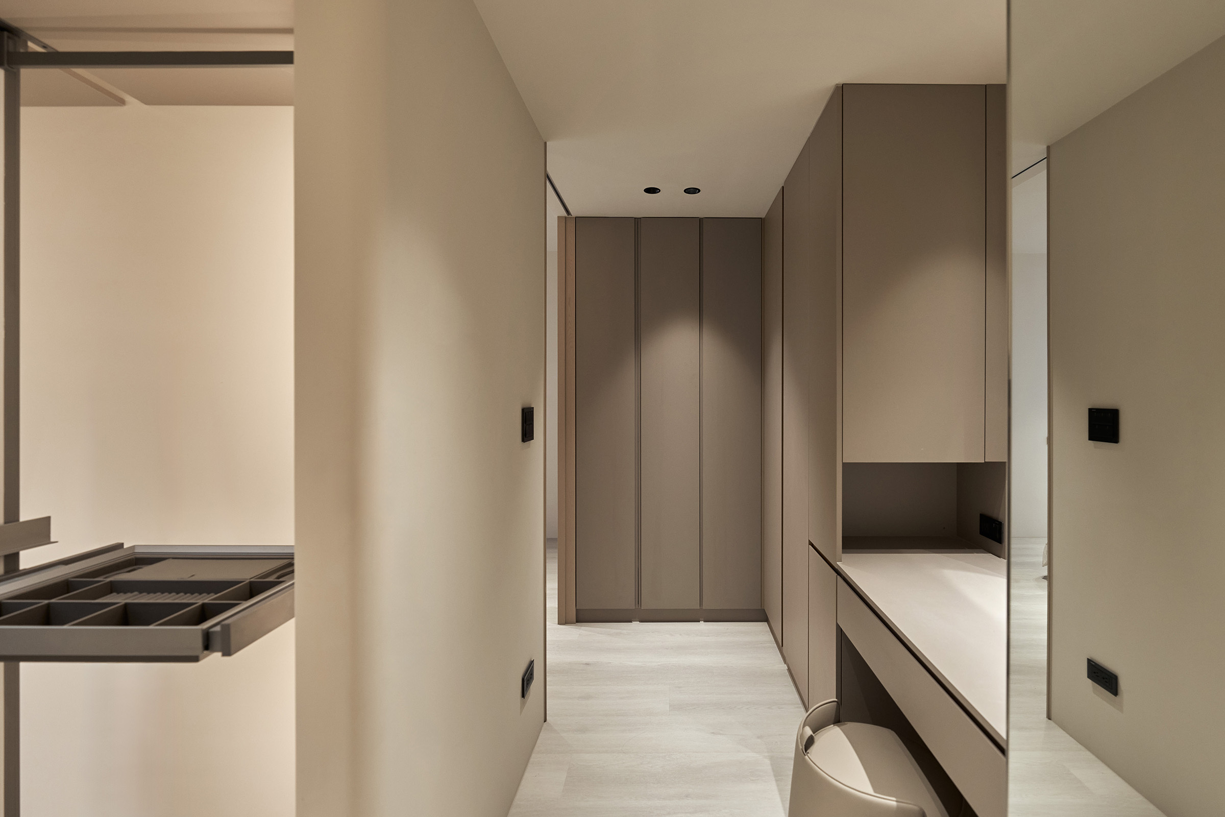 當電動門靜靜合上,巧妙劃分公共與私密領域,即便有賓客到訪,也能確保休息的品質與隱私的安全。