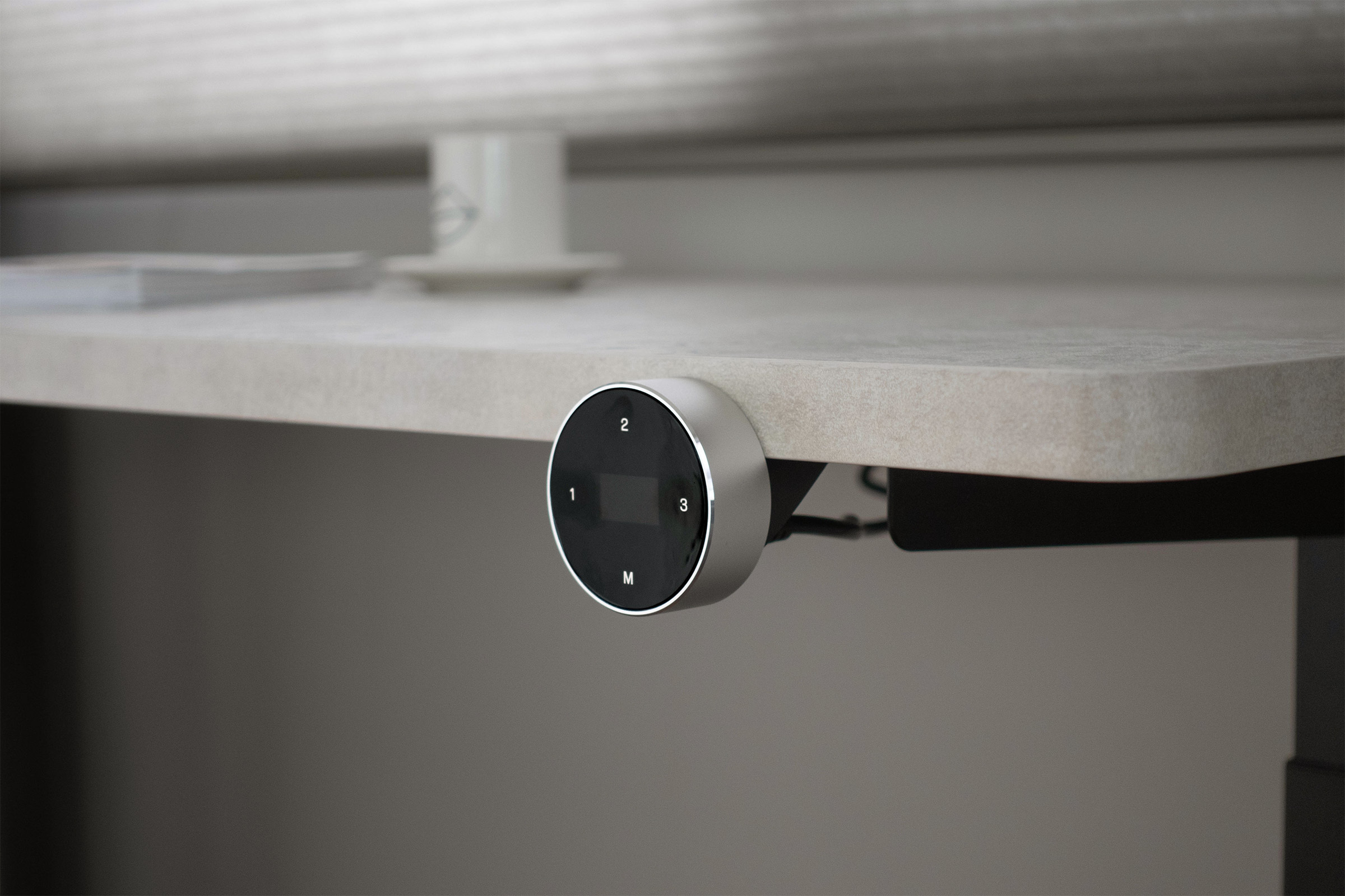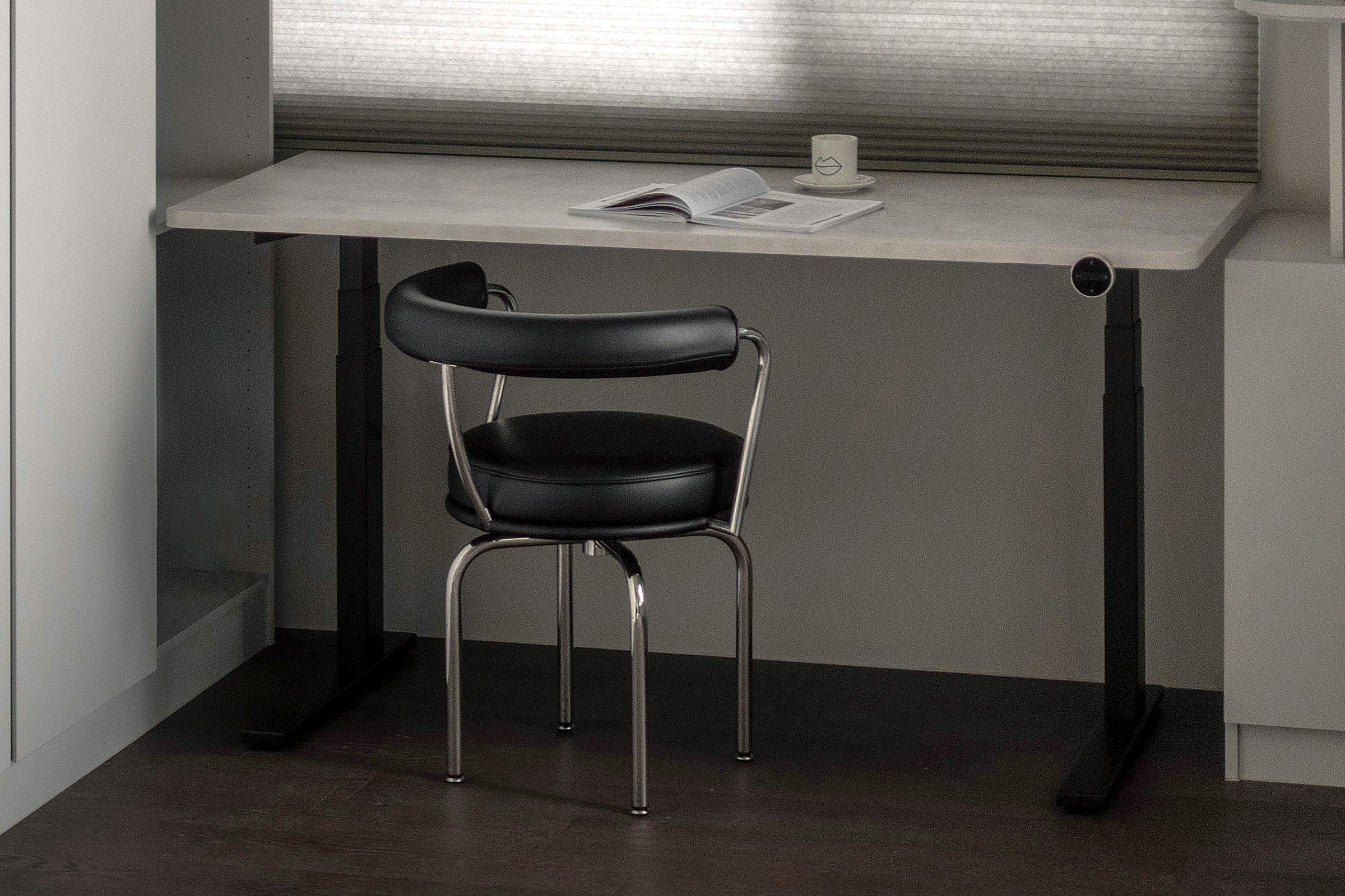 辦公桌採用升降桌提供靈活的工作模式,旋鈕開關設計,三段記憶位置貼合日常使用需求,精準且便利,讓靈感隨高度而輕鬆釋放。