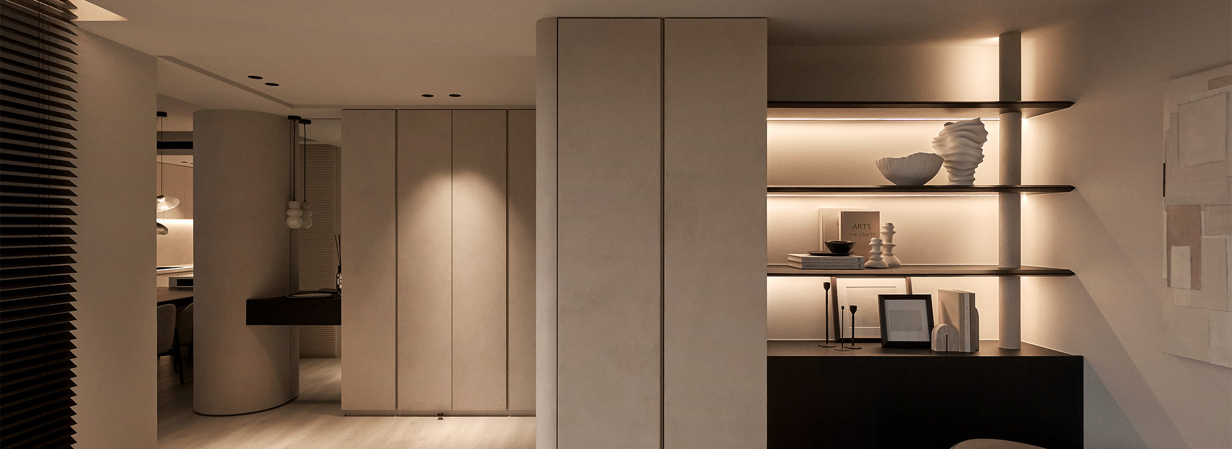 每個陳列與收納的細節,都在述說著家的從容與不凡。這裡,是沉澱自我與款待友人的雙重境地,一切都溫潤流暢。